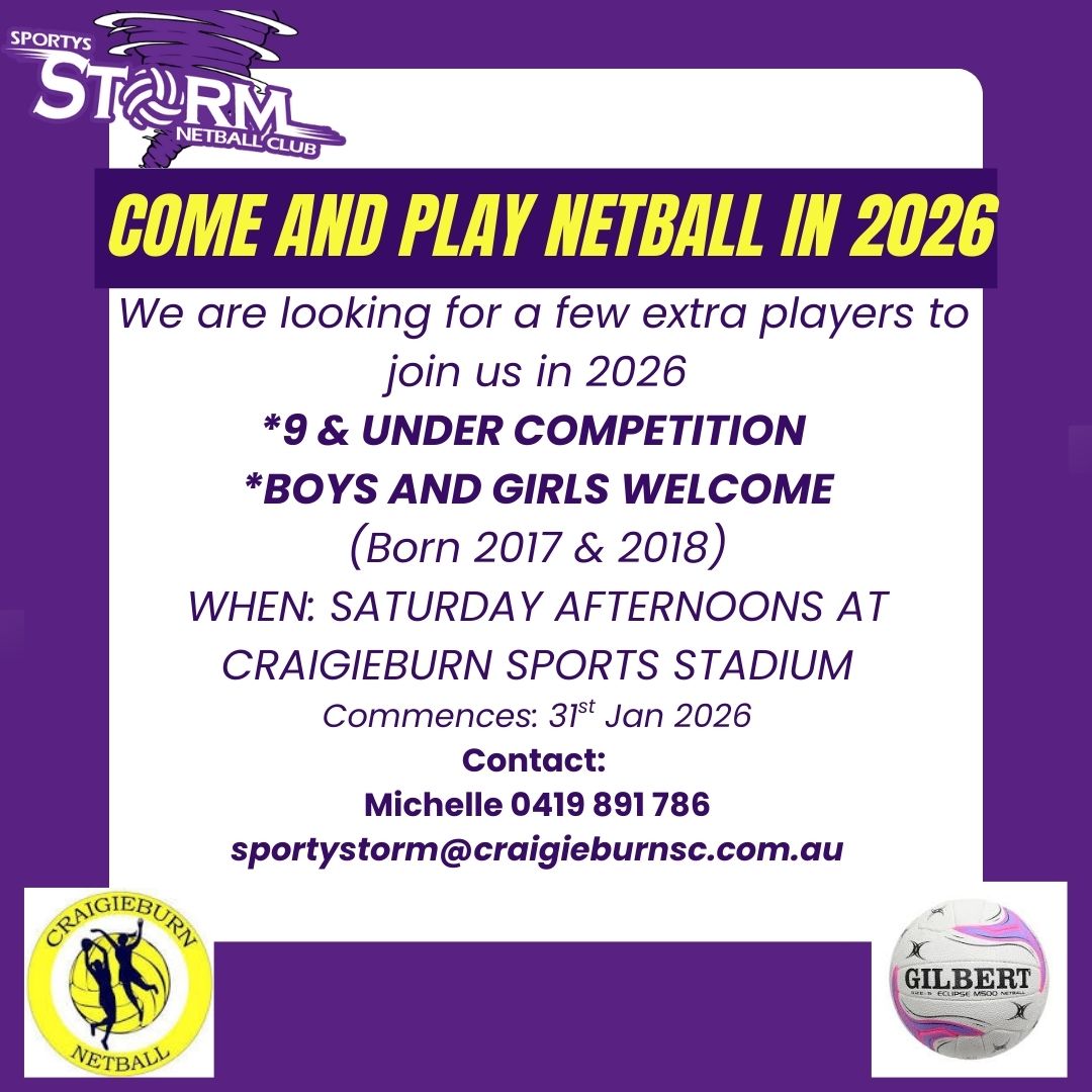 For enquiries please email sportystorm@craigieburnsc.com. au
